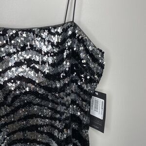 Black and silver all-over sequin strappy cocktail dress