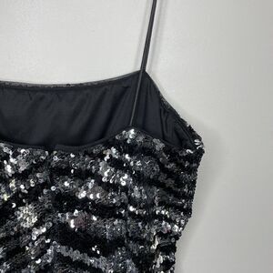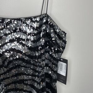 AIDAN MATTOX Dress Womens 8 Mini Cocktail Silver Black Sequin Strappy NEW