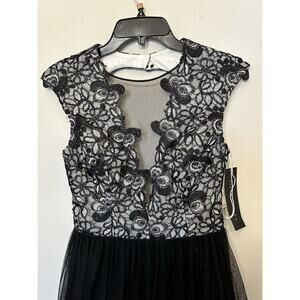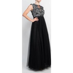 AIDAN MATTOX Embroidered Sleeveless Evening Gown Womens 2 Cap Sleeve Black NEW