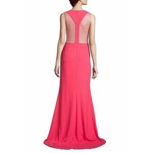 AIDAN MATTOX Pink Tangerine Crepe Lace Illusion Gown Dress NWT Size 8