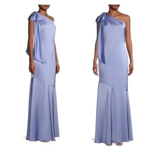 NEW with tags AIDAN MATTOX Periwinkle Blue Satin Asymmetric One Shoulder Tie Shoulder Mermaid Maxi Dress