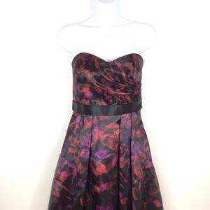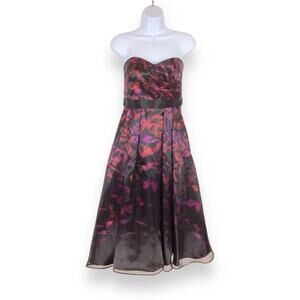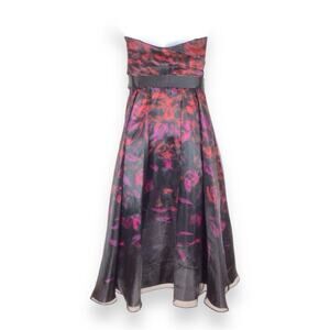 AIDAN MATTOX Strapless Black Floral Print Organza Midi Dress size 4