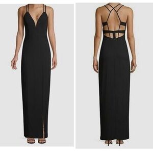 Aidan by Aidan Mattox gown with dual straps and a geometric cutout back