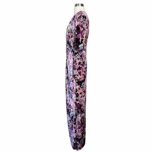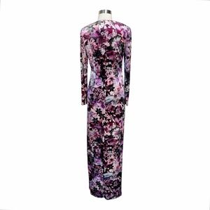 AIDAN MATTOX Velvet Dress Floral Maxi Stretch Multicolor Pink Purple Florals 6