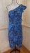 The blue multicolor pattern adds a vibrant touch to this elegant dress, measuring approximately 39.5 inches from shoulder to hem. Pit to pit 17”