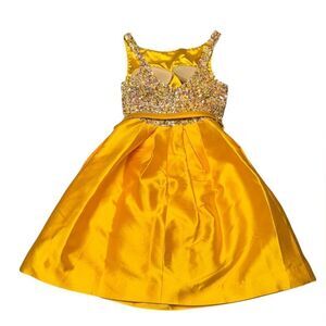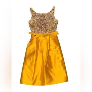 🎉 AIDAN MATTOX sequin fit & flare mini yellow speckle dress with pockets size 8