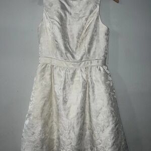 AIDAN by AIDAN MATTOX Ivory S/L Metallic Jacquard Fit Flare Dress size 8