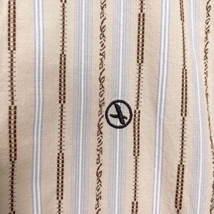 AIGLE Embroidered Striped Button Front Shirt Beige Brown Lightweight Mens Large