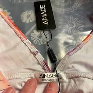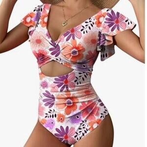 AI'MAGE Brand Women's XXL NWT Ruffle One Piece Swimsuit Orange & Purple Floral