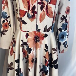 AIME Cream Floral Print Fit & Flare Cottage Core 3/4 Sleeve Dress Size Medium