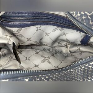 This adorable navy blue suede quilted silver metallic snake print crossbody from Aimee Kestenberg makes a great everyday piece! It features an adjustable chain strap, zipper top with large tassel, large interior zipper pocket, as well as 1 large interior slip pocket! Preowned and in excellent condition!