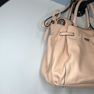 Hi, what color is your handbag and does it have any stains or marks and is it a soft leather?
