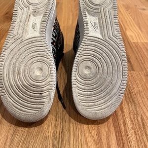 Nike Air Force 1, high top, with “just do it” repeating logo. Minimally used in great condition.