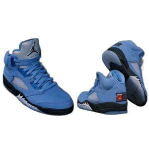 The Air Jordan 5 Retro SE ‘UNC’ showcases a familiar pastel hue inspired by Michael Jordan’s alma mater. The upper is crafted from University Blue nubuck with tonal TPU eyelets, ventilated quarter-panel netting and a woven jock tag at the heel. An embroidered Jumpman decorates the tongue, rendered in a reflective silver finish for added visibility in low-light conditions. Lightweight cushioning comes courtesy of a black polyurethane midsole, accented with speckled shark-tooth detailing and fitted with a visible Air-sole unit in the heel. Underfoot, a translucent herringbone-traction outsole provides optimal grip.