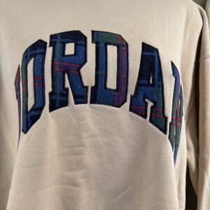 Keywords: Jordan, Crewneck, Sweatshirt, Vintage, Retro, Plaid, Embroidered Logo, Streetwear, Athleisure, Beige, 1985, Classic, Casual