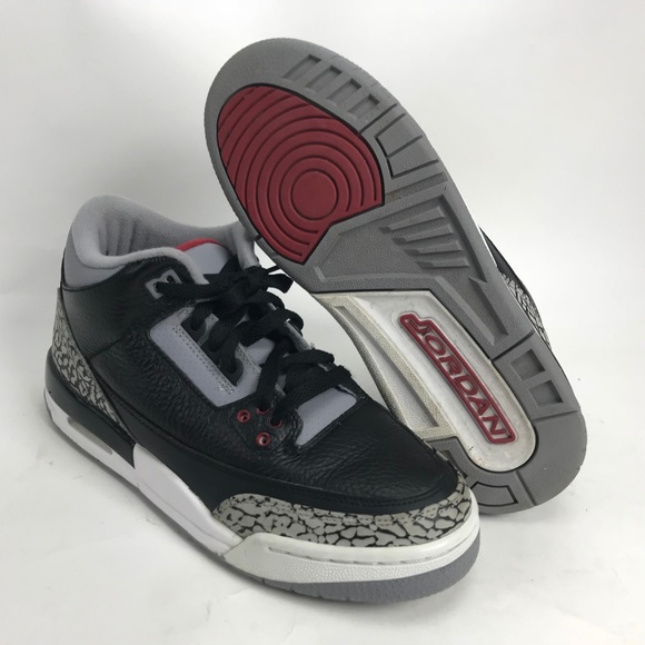 EUC AIR JORDAN III 3 RETRO GS SIZE BLACK CEMENT GREY RED 398614 010