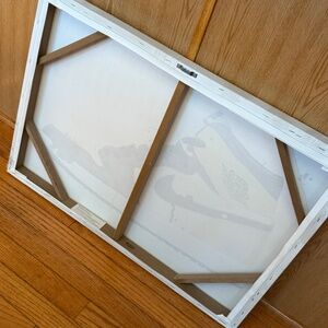 NICE PIECE! THIS IS A CANVAS PAINTING OF THE AIR JORDAN LAKERS HI-TOP! MEASUREMENTS 28 INCHES LONG X 20 INCHES HIGH X