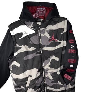 AIR JORDAN boys LAYERED-LOOK HOODED Puffer VEST JACKET XL camo Jump Man Logo