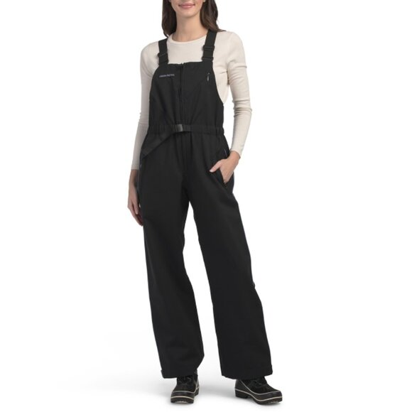 Brand New Color: Black adjustable shoulder straps, waterproof, breathable, velcro cuffs, layered design square neck, sleeveless regular length, straight leg, 2 side zip pockets, 1 back zip pocket, 1 chest zip pocket front zip closure inseam: 30in, taken from size S polyester imported machine wash