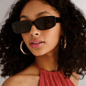 Keywords: Aire Ceres sunglasses, navy rectangle eyewear, 90s slim frame, recycled eco-friendly sunglasses, UV protection, smoke mono lens, unisex fashion shades, lightweight durable accessory, NWT
