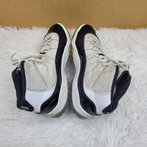 This Iconic Jordan 11 colorway is showcasing a white upper with black accents, white midsole, and a freezing cold translucent sole. Some wear as shown in pictures. In excellent used condition.