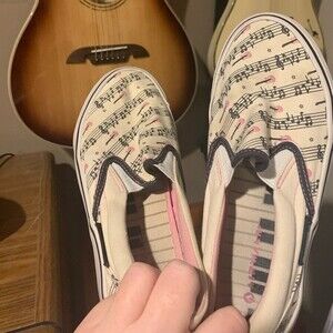 AIRWALK SLIP ON CANVAS SHOES SIZE 6 Musical Notes Guitar Pattern