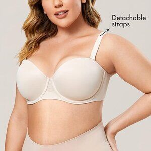 AISILIN Woman Strapless Bras Size 34F Beige Lightly Padded Underwire Straps NWT