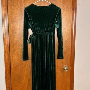 AISWI 2023 Emerald Green Velvet Maternity Wrap Dress Long Sleeves Fall Winter