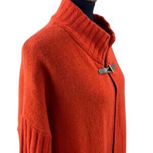 A.Ida Long Wool Sweater Coat Size L Orange Made In Italy