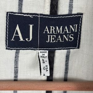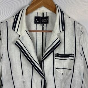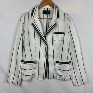 AJ Armani Jeans Women Linen LongSleeve Blazer Sz 12 Made in Italy Classic Preppy