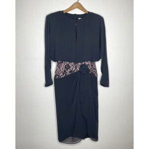 A.J. Bari 80s VTG Dress Lace Rhinestone 40s Inspired Strong Shoulders Modern 4/6