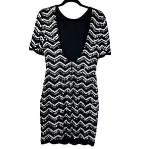 A.J. Bari Women's 100% Silk Sequin Black and White Dress Size 8