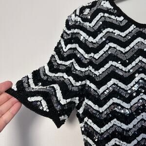 A.J. Bari Women's 100% Silk Sequin Black and White Dress Size 8 Sparkle Classic
