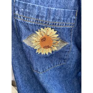 AJ Brandon Vtg Denim Button Down Fall Embroidered Shirt Large Sunflower 90s