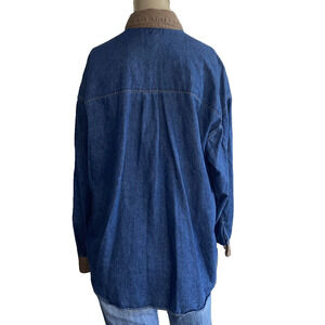 The AJ Brandon Vtg Denim Button Down shirt is a stylish and versatile piece perfect for the fall season. Made from 100% cotton denim, this long sleeve shirt features an embroidered sunflower design, adding a touch of flair to the classic blue color. With a collared neckline and button closure, this shirt is ideal for casual occasions or traveling. The vintage 90s theme and sunflower accent make it a unique addition to any wardrobe, while the easy care fabric ensures low maintenance for a comfortable wear. Ideal for women who appreciate timeless style and quality craftsmanship.