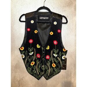 Vintage AJ Embroidered Suede Leather Vest – Size Medium