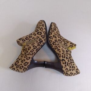 AJ Valenci Leopard Print Leather Heeled Ankle Booties Size 7