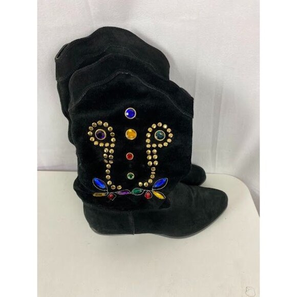 AJ Valenci Studded 80's Black Suede Cowboy Boots Women's 9M.