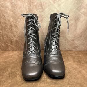 AJ Valenci Victorian Style Lace Up Heeled Boots Gray Leather Steampunk Gothic