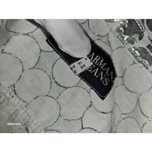 AJ Armani Jeans Cropped Fashion Jacket Rare Silver Chrome Abstract