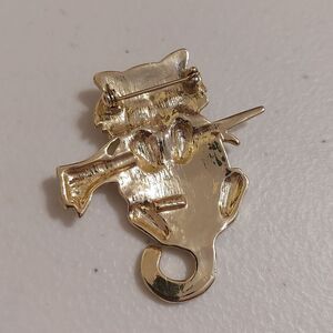 AJC Kitty Cat Hanging unto a Branch Gold Tone Brooch Pin