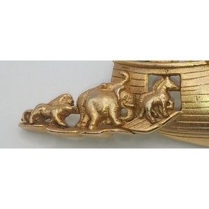 AJC Noahs Ark Gold Tone Animal Boat Brooch Pin Signed Vintage