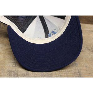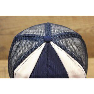 AJD Vintage Lucky Stripes Snapback Trucker Hat Size Large Chain Stitch Knit
