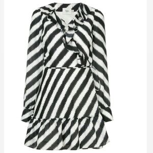 AJE Black & White Striped Tablas Mini Ruffles Wrap Dress Long Sleeve Size 6 NWOT