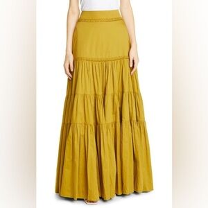 AJE CASABLANCA BRAIDED TIERED MAXI SKIRT IN OLIVE GREEN boho quiet luxury