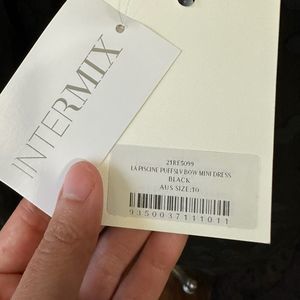 NWT AJE La Piscine Puff Sleeve Bow Back Black Mini Dress Sz 10 W7585