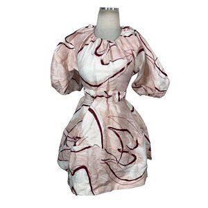 Arriving in the brand's "Whimsical Dove" colourway, this linen-blend Psychedelia dress encompasses Aje's grandiose approach to design. Featuring puff short sleeves and a waist-defining cut-out, the piece is finished with a tie at the back.