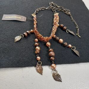 AJS Design Studio Antiqued Bronze Braided Beads/Floral Accents Necklace Choker