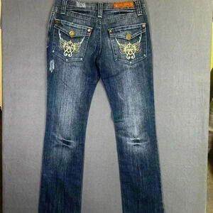 A-Jeans Straight Leg Jeans Womens 9 Juniors Faded Denim Blue Embroidered 0709