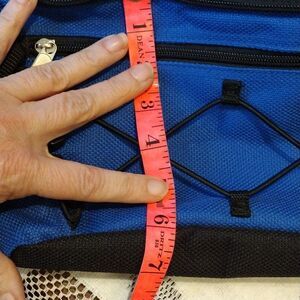 hiking waist pack. zippered pockets. flat measure waist 26"", adjustable. heavy canvas